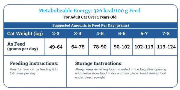 Bột gia cầm, gạo, bột gluten bắp, bắp, bột cá, đạm cá hồi thủy phân, mỡ động vật tinh luyện, đạm động vật, chất xơ – cellulose, mỡ gia cầm, dầu cá hồi, dầu thực vật (dầu cám gạo)