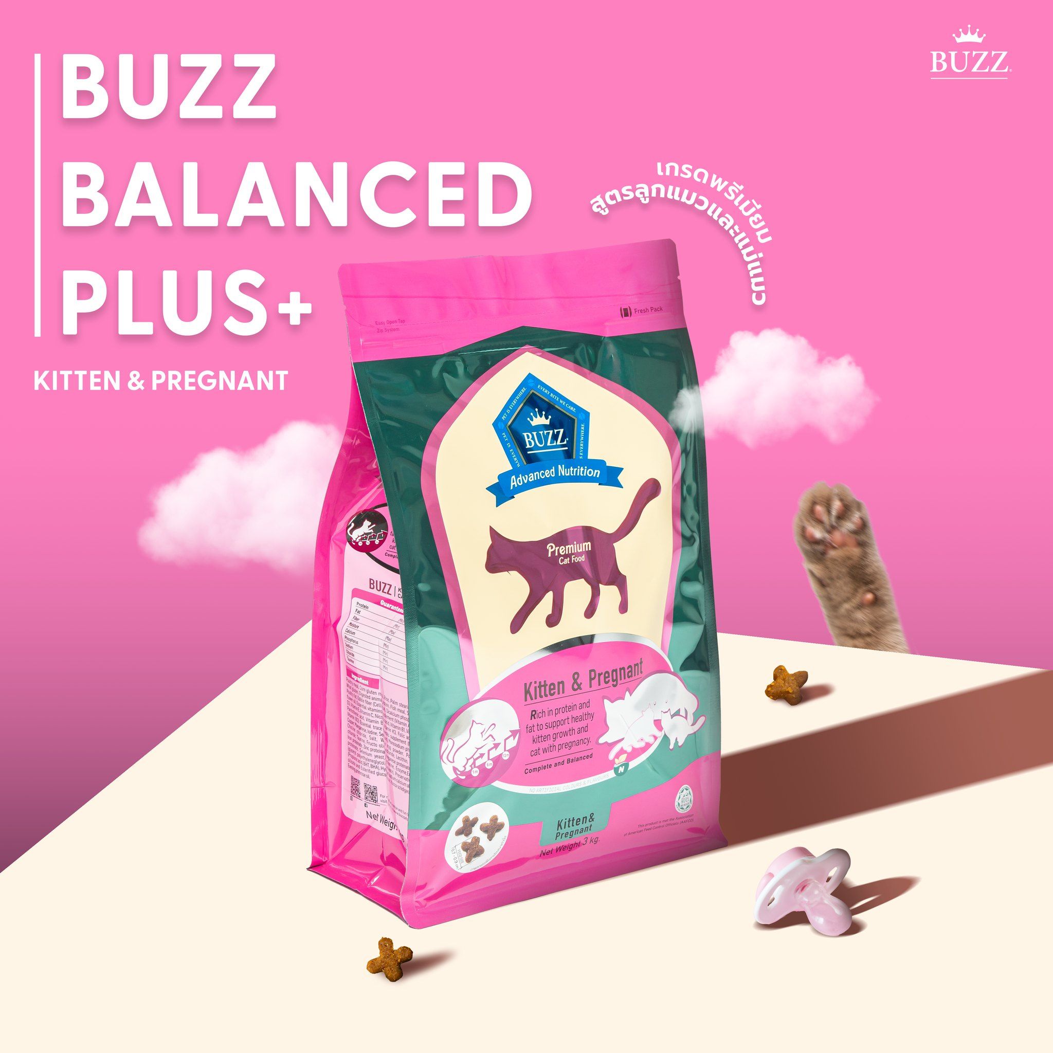 Thức ăn hạt BUZZ Premium cho Mèo Con và Mèo Mẹ (Kitten & Pregnant)